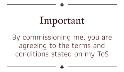 After chosing your commissions type, here is some information you should be aware of before commissioning me. Almost everything that you need to know is here, if there is anything you wanna know, please feel free to ask!